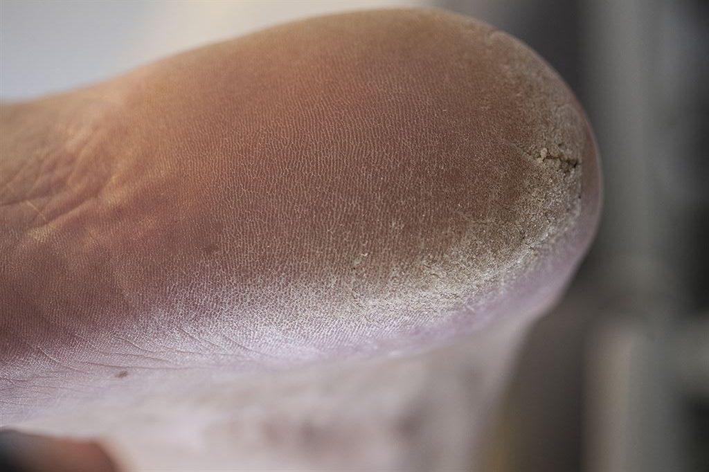 Den hårde hud kan udvikle sig til revner, som ofte sidder i en halvmåne på hælens bageste del. Revnerne kan blive så dybe, at de bløder og gør ondt at gå på.